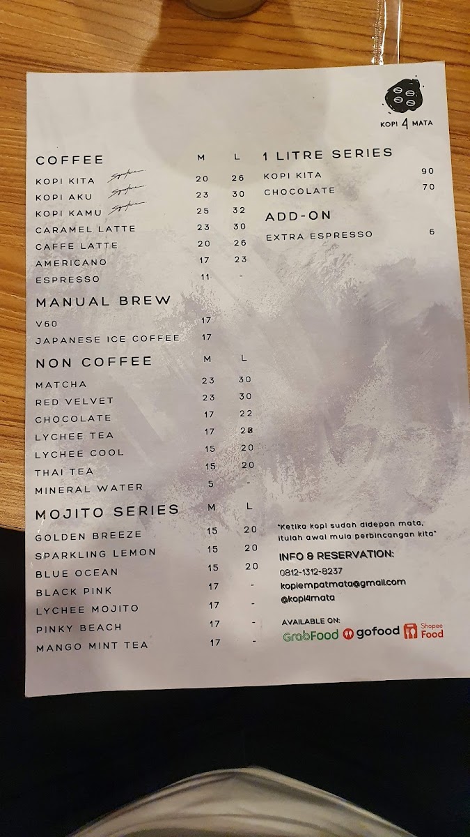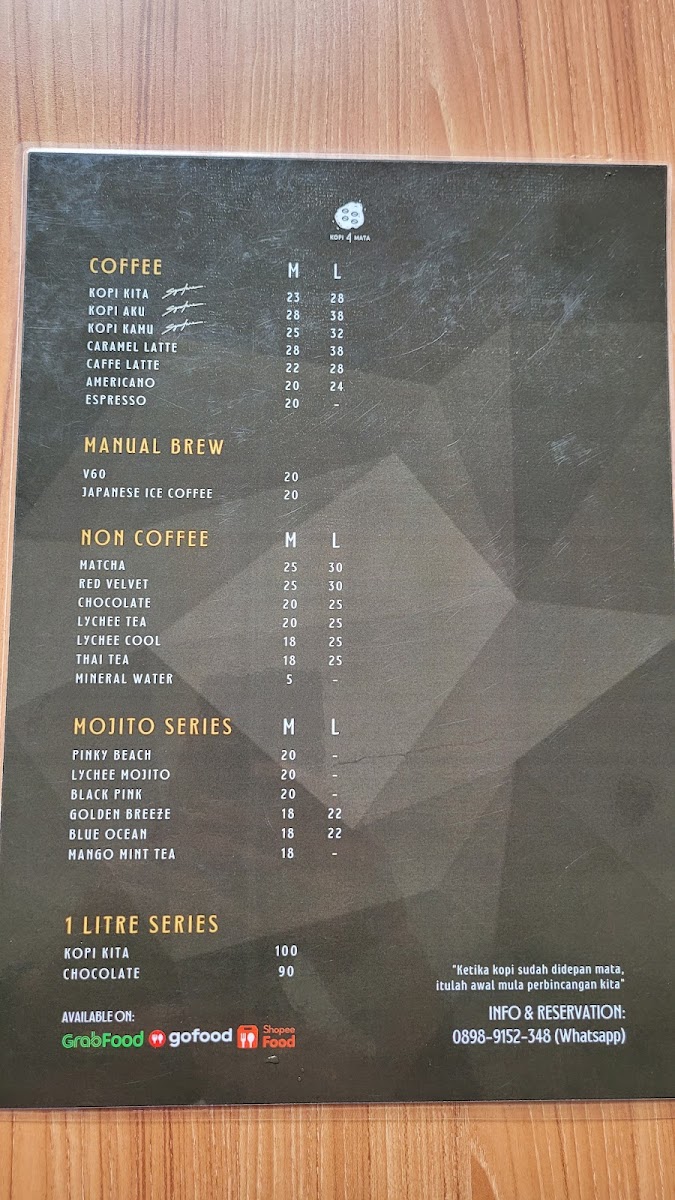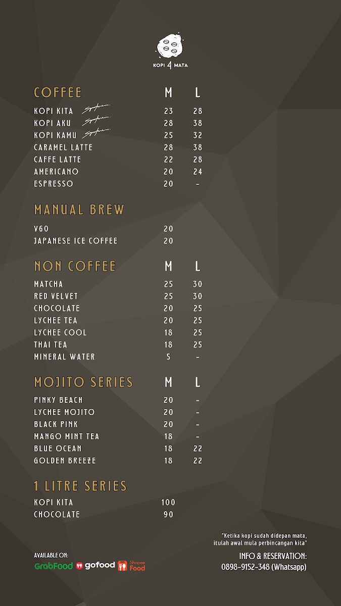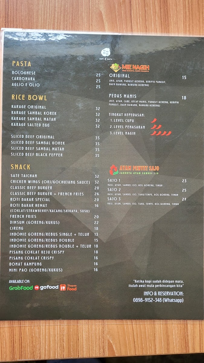 Kopi 4 Mata, Villa Tomang Baru Menu